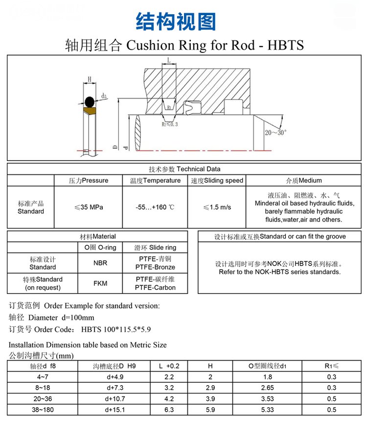 东晟轴用防尘圈 耐腐蚀耐高温端盖液压油缸气缸轴承HBTS机械缓冲环